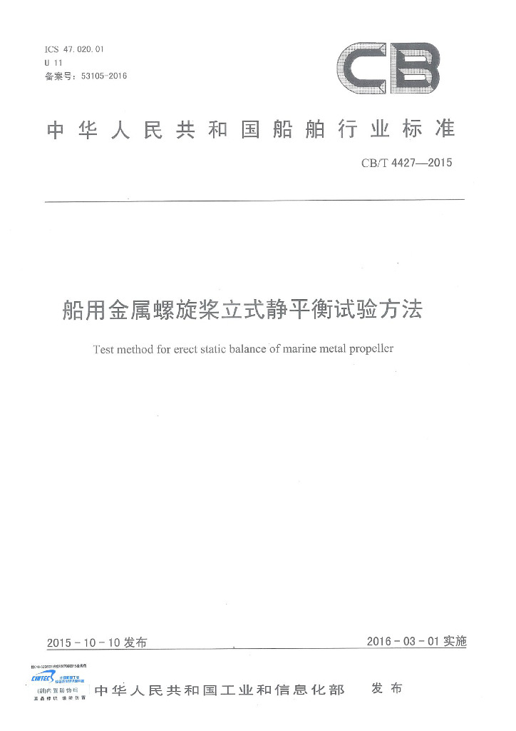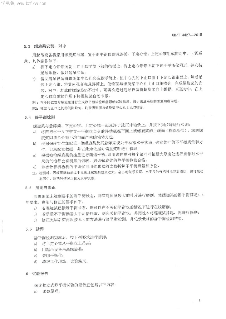 CB/T 4427-2015 船用金属螺旋桨立式静平衡试验方法