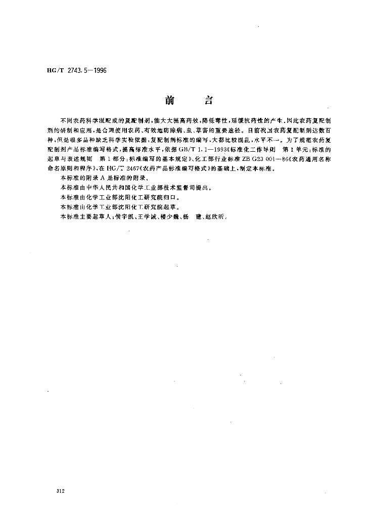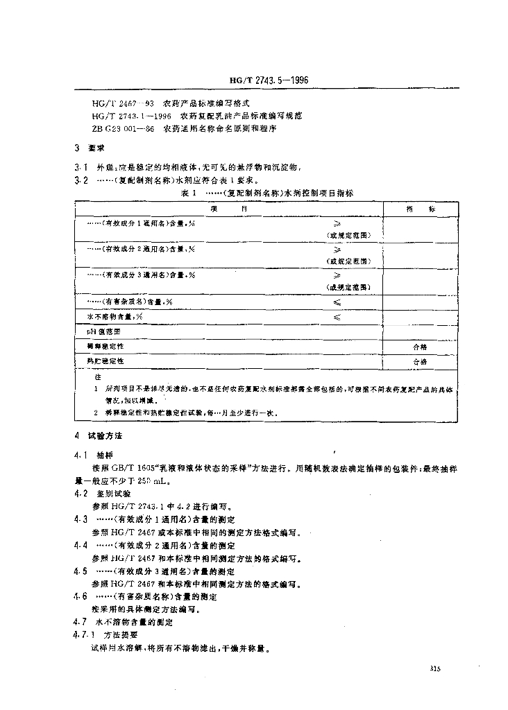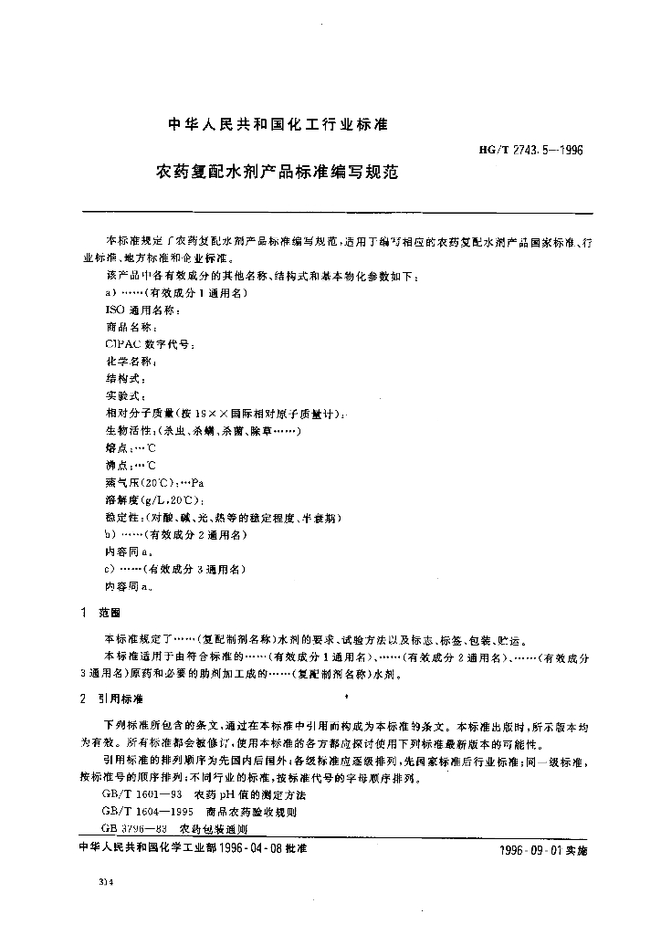 HG/T 2743.5-1996 农药复配水剂产品标准编写规范