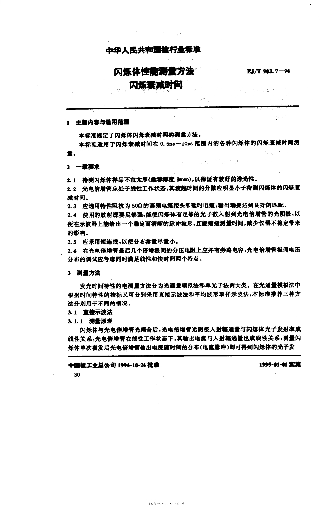 EJ/T 903.7-1994 闪烁体性能测量方法 闪烁衰减时间