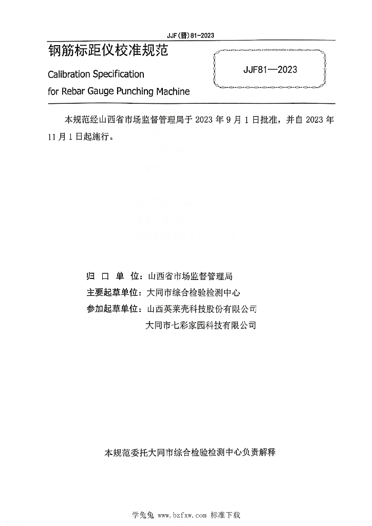 JJF(晋)81-2023 钢筋标距仪校准规范