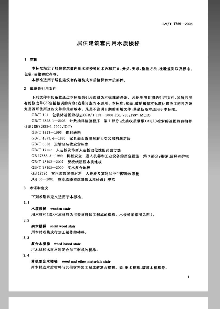 LY/T 1789-2008 居住建筑套内用木质楼梯