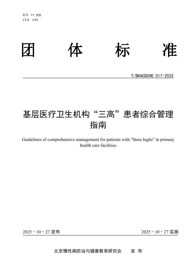 T/BRACDCHE 017-2025 基层医疗卫生机构“三高”患者综合管理指南