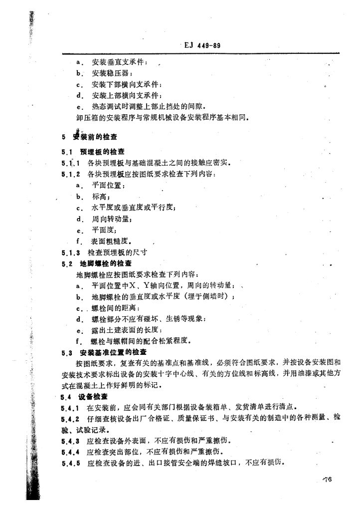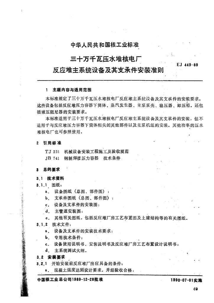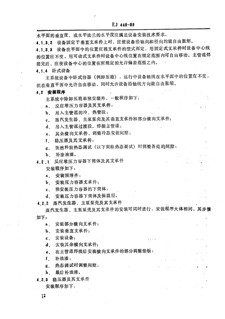 EJ/T 449-1989 三十万千瓦压水堆核电厂 反应堆主系统设备及其支承件安装准则