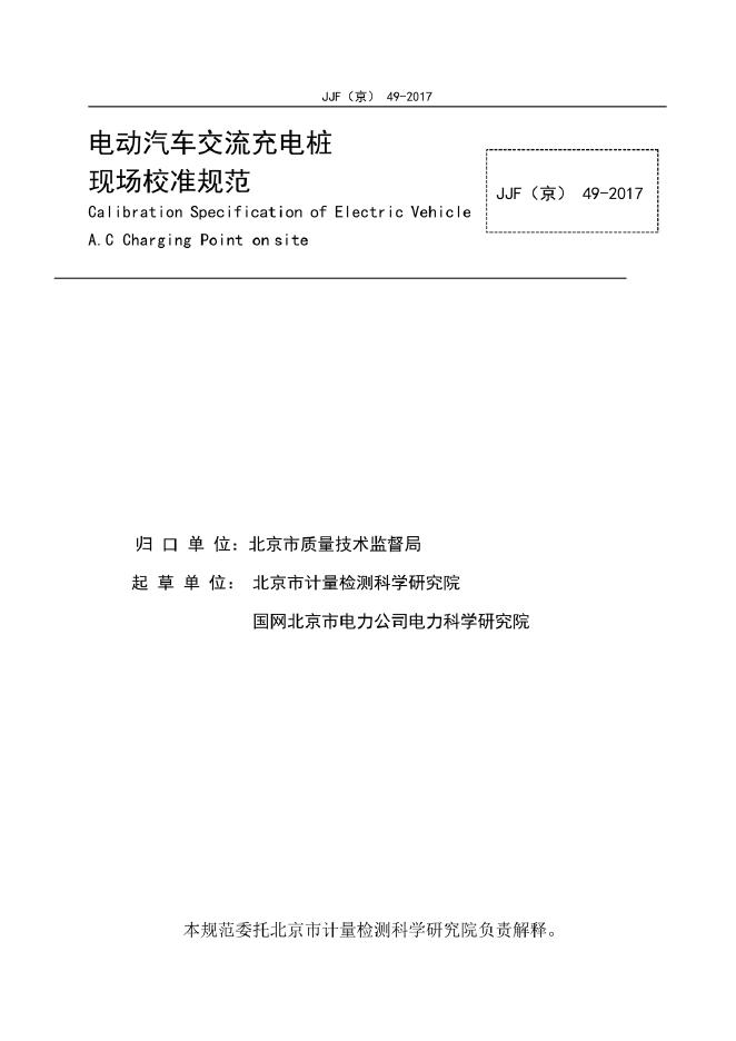 JJF(京)49-2017 电动汽车交流充电桩现场校准规范