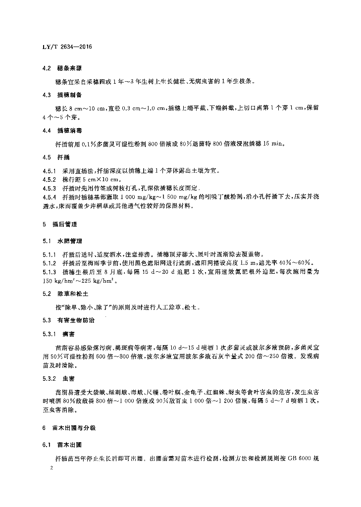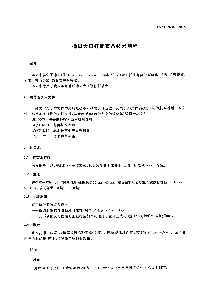 LY/T 2634-2016 榉树大田扦插育苗技术规程
