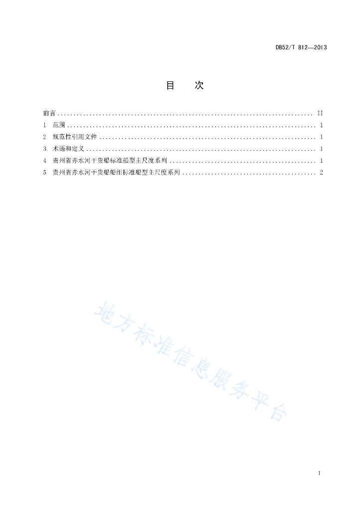 DB52/T 812-2013 贵州省赤水河货运船舶(队)标准船型主尺度系列 货船及船组