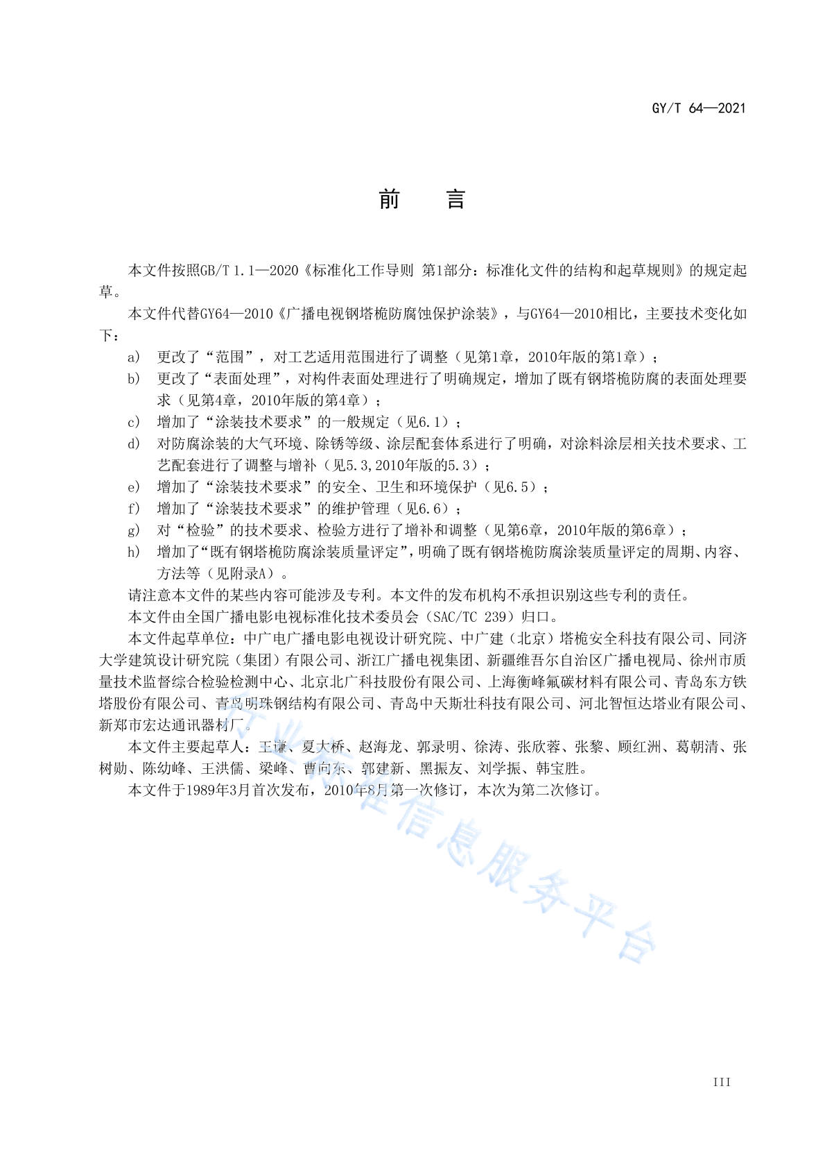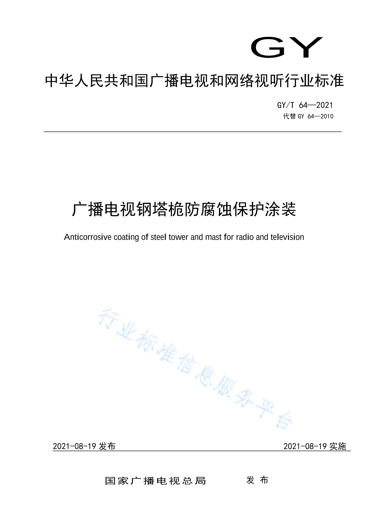 - 代替标准:GY/T 64-2010