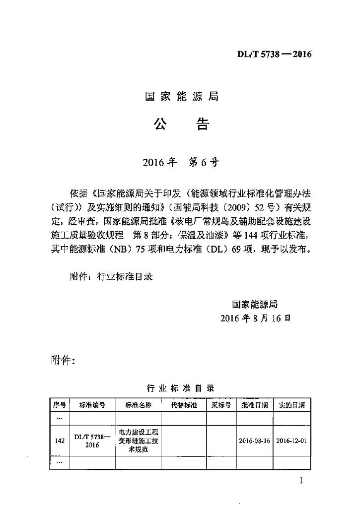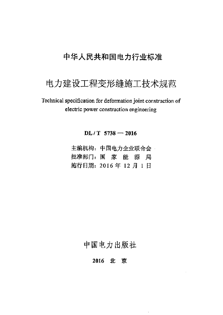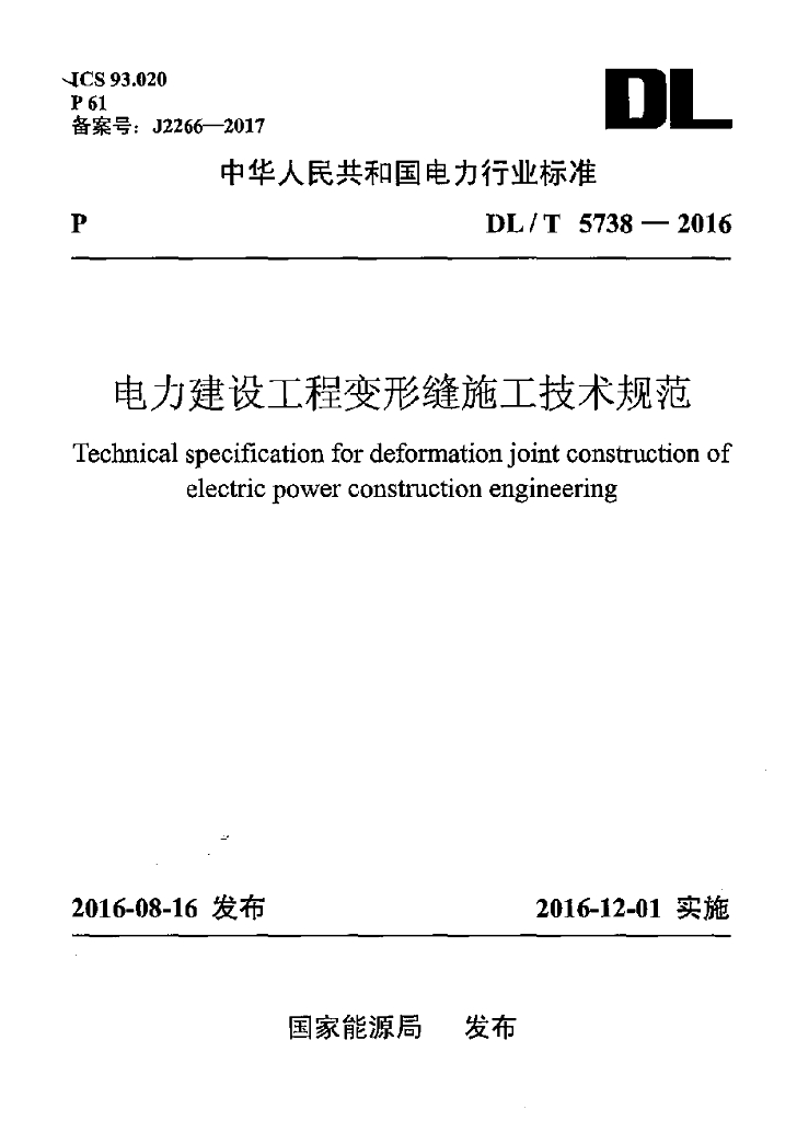 DL/T 5738-2016 电力建设工程变形缝施工技术规范