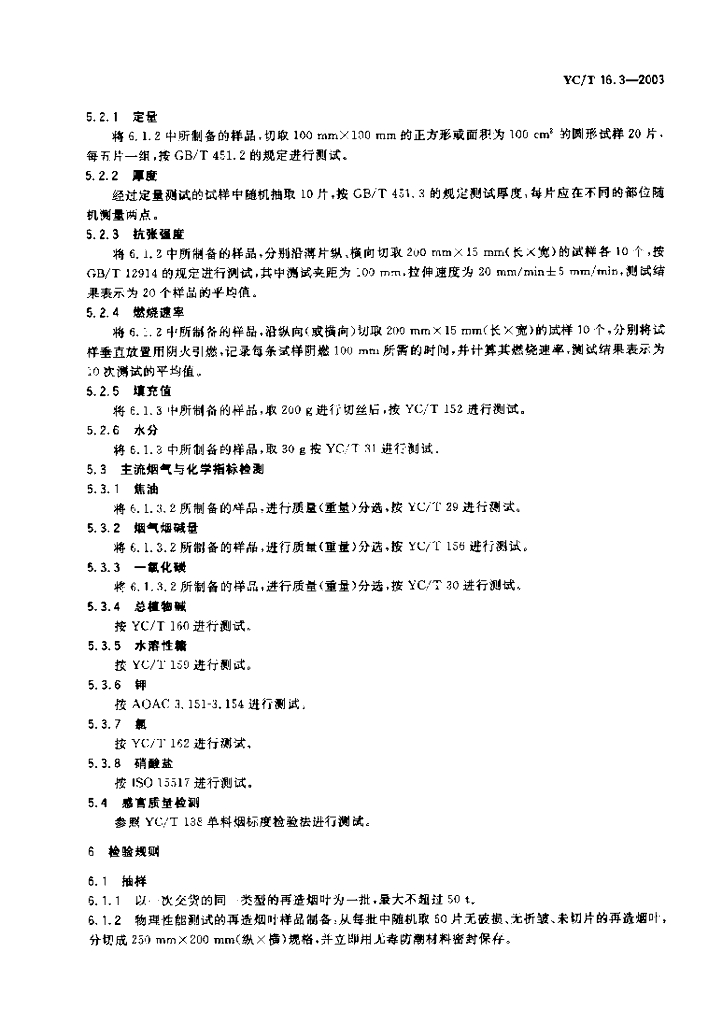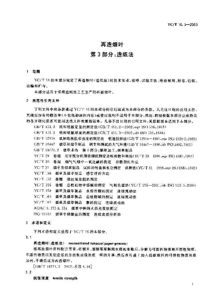 YC/T 16.3-2003 再造烟叶 第3部分:造纸法
