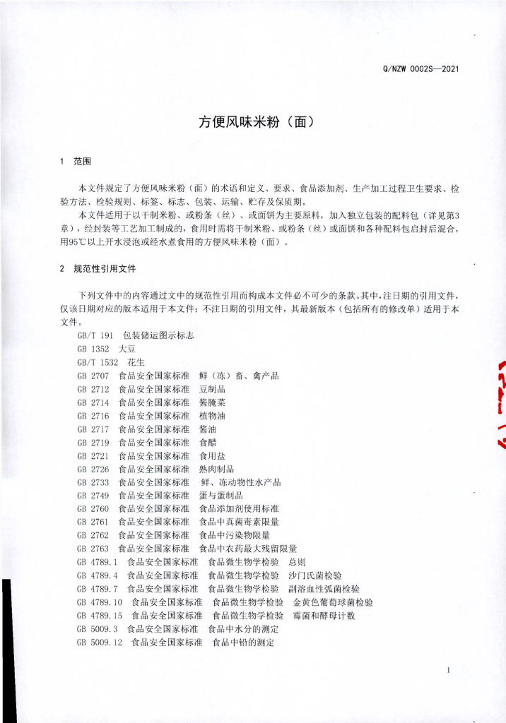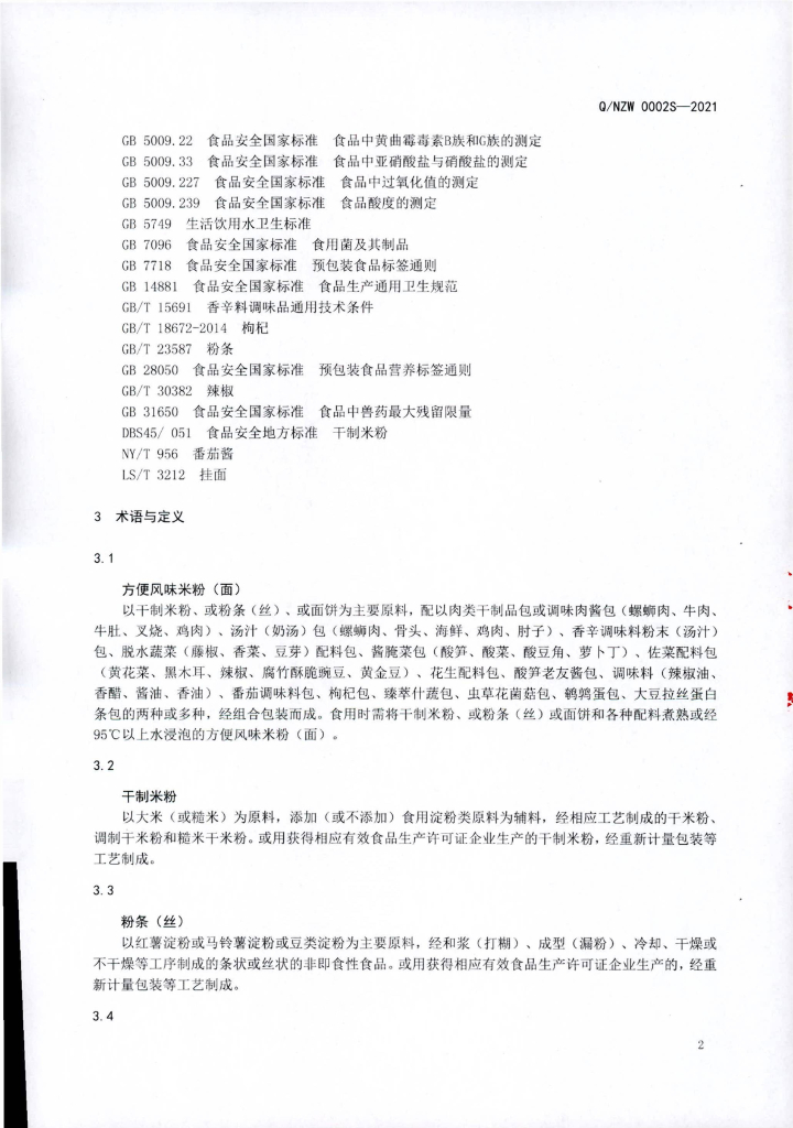 Q/NZW 0002S-2021 方便风味米粉(面)