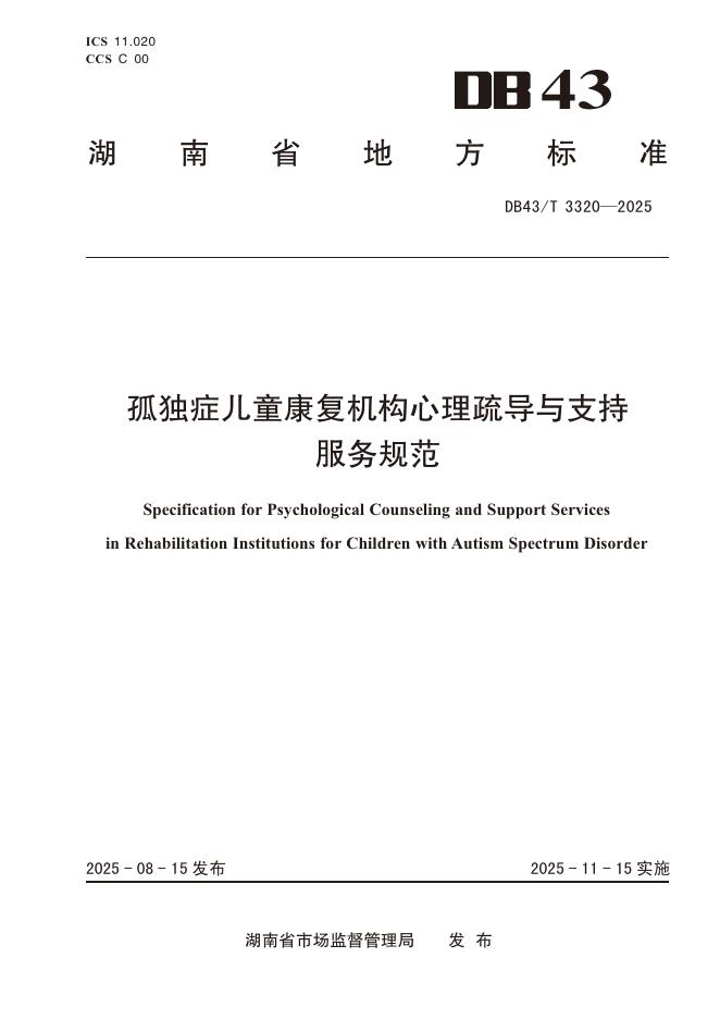 DB43/T 3320-2025 孤独症儿童康复机构心理疏导与支持服务规范