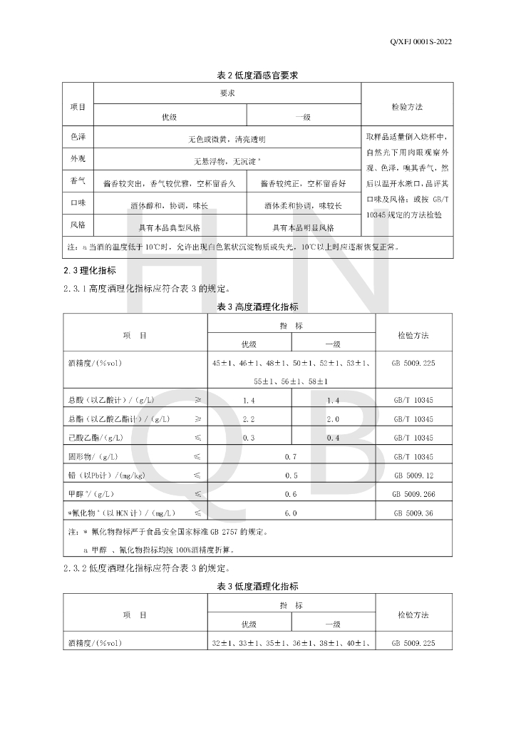 Q/XFJ 0001S-2022 融合酱香型蒸馏酒