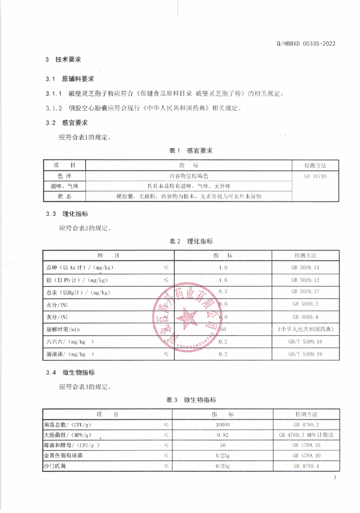 Q/HBBXD 0033S-2022 高贝利欣牌破壁灵芝孢子粉胶囊