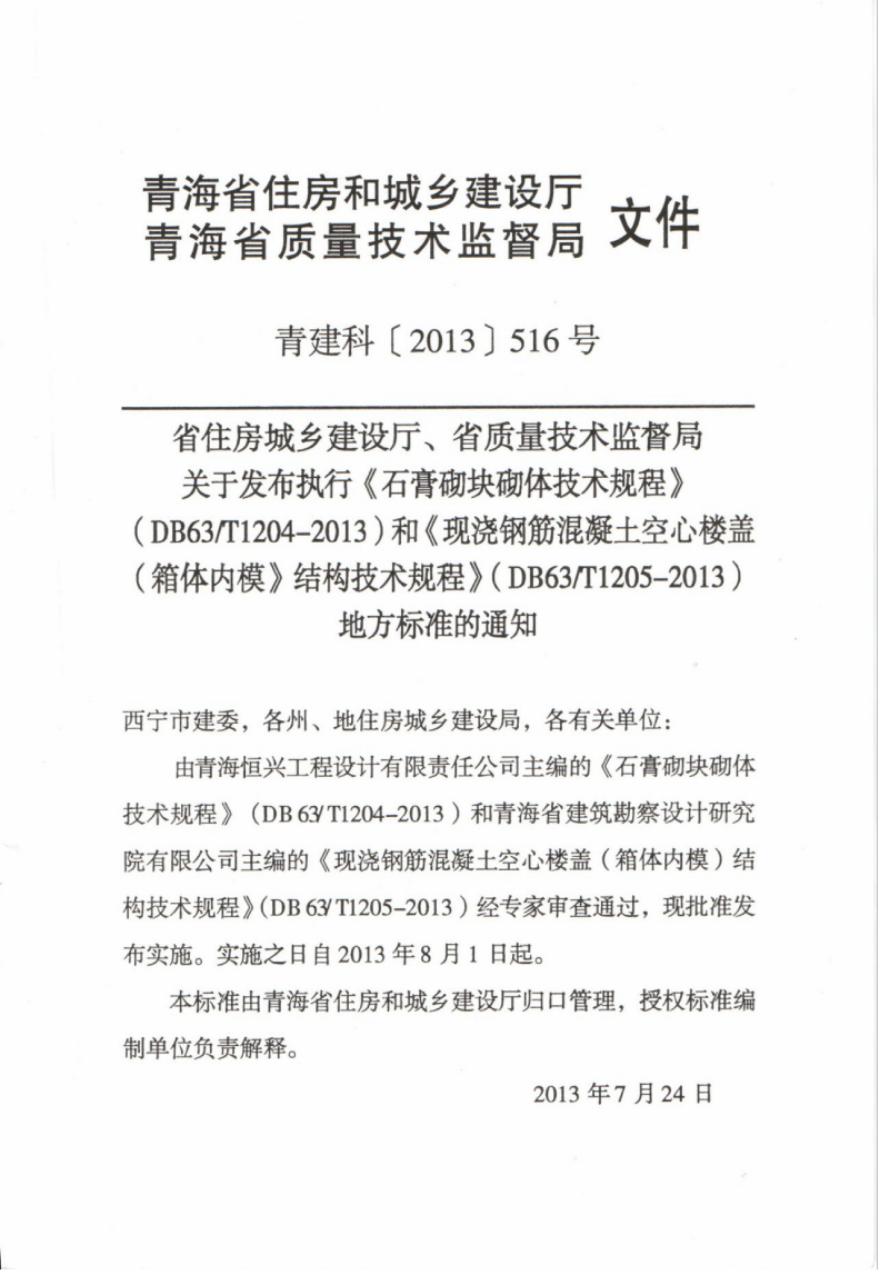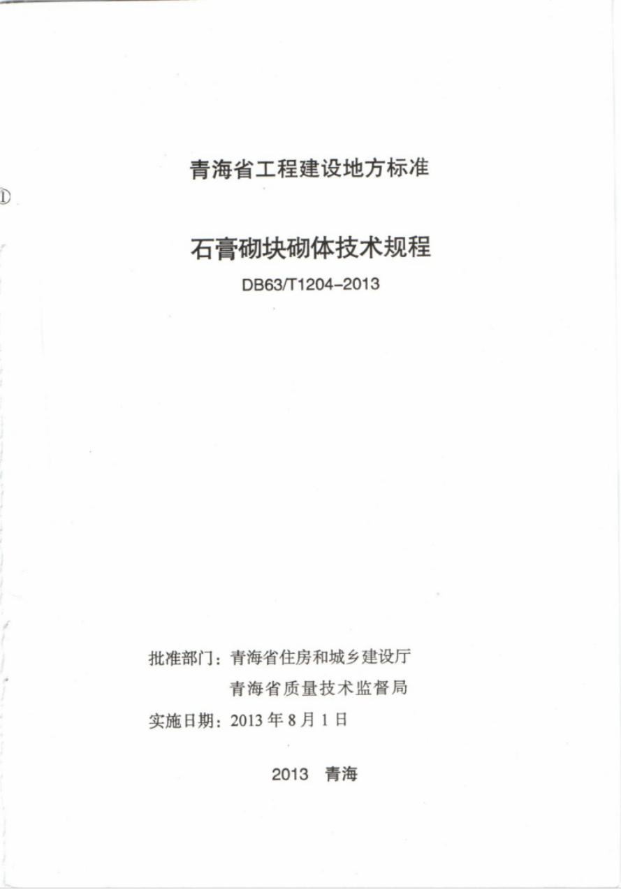 DB63/T 1204-2013 石膏砌块砌体技术规程