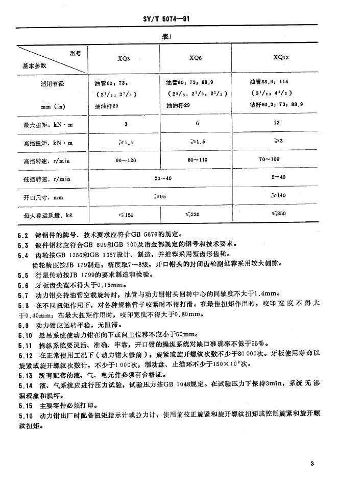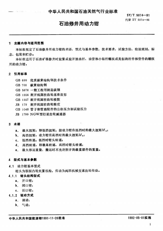 SY/T 5074-1991 石油修井用动力钳