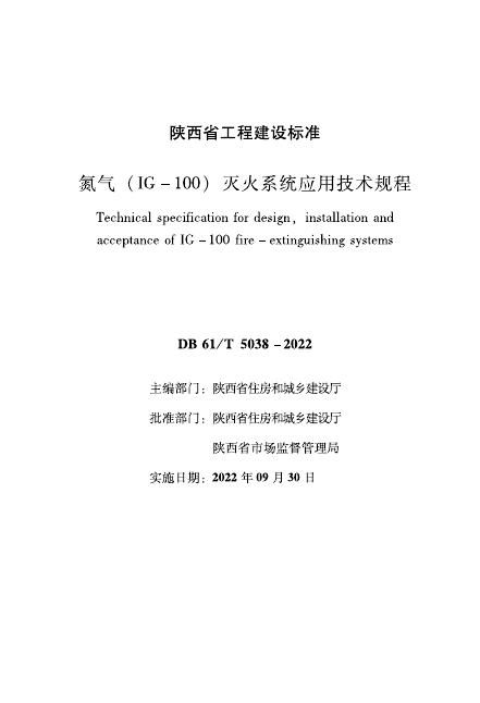 DB61/T 5038-2022 氮气(IG-100)灭火系统应用技术规程