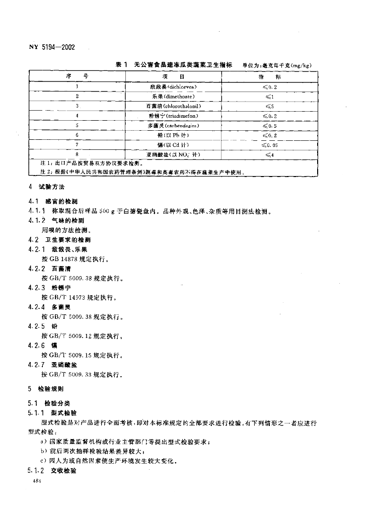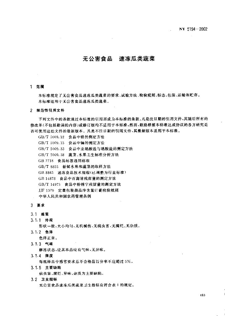 NY 5194-2002 无公害食品 速冻瓜类蔬菜