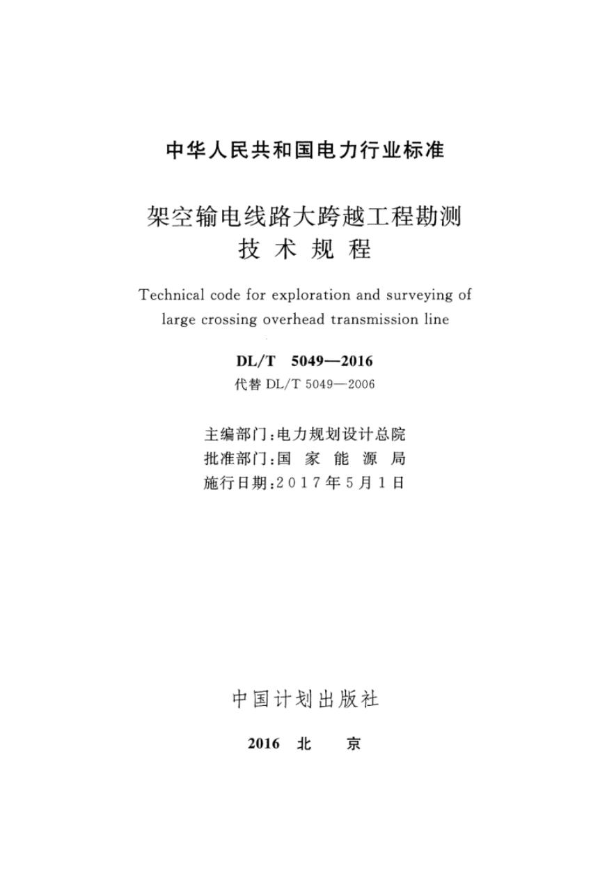 DL/T 5049-2016 架空输电线路大跨越工程勘测技术规程