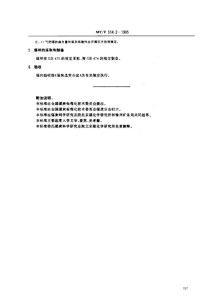 MT/T 514.2-1995 发电煤粉锅炉用徐州矿务局煤技术条件