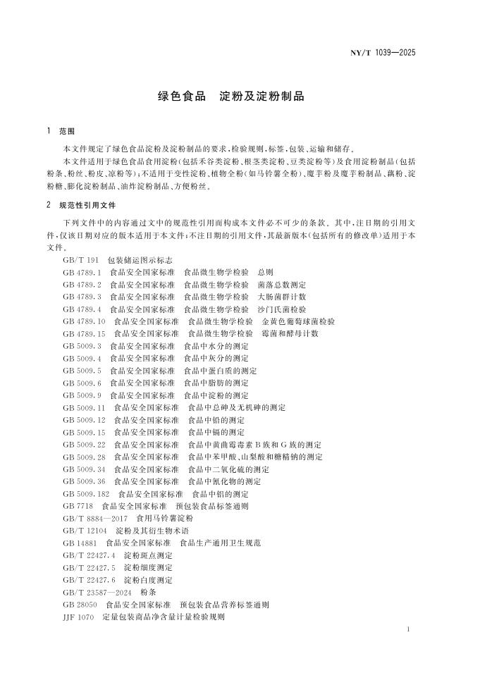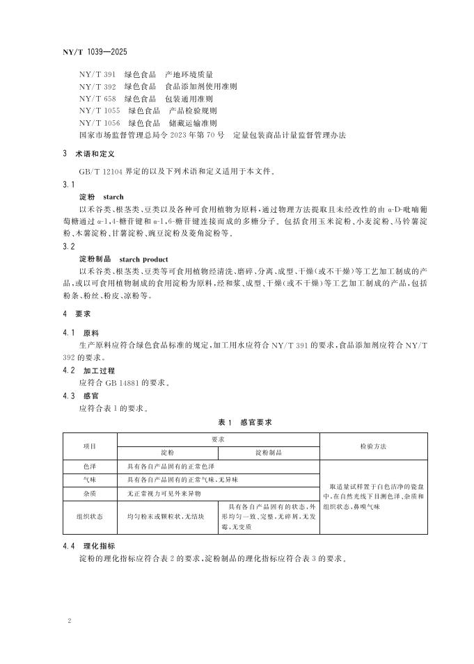 NY/T 1039-2025 绿色食品 淀粉及淀粉制品