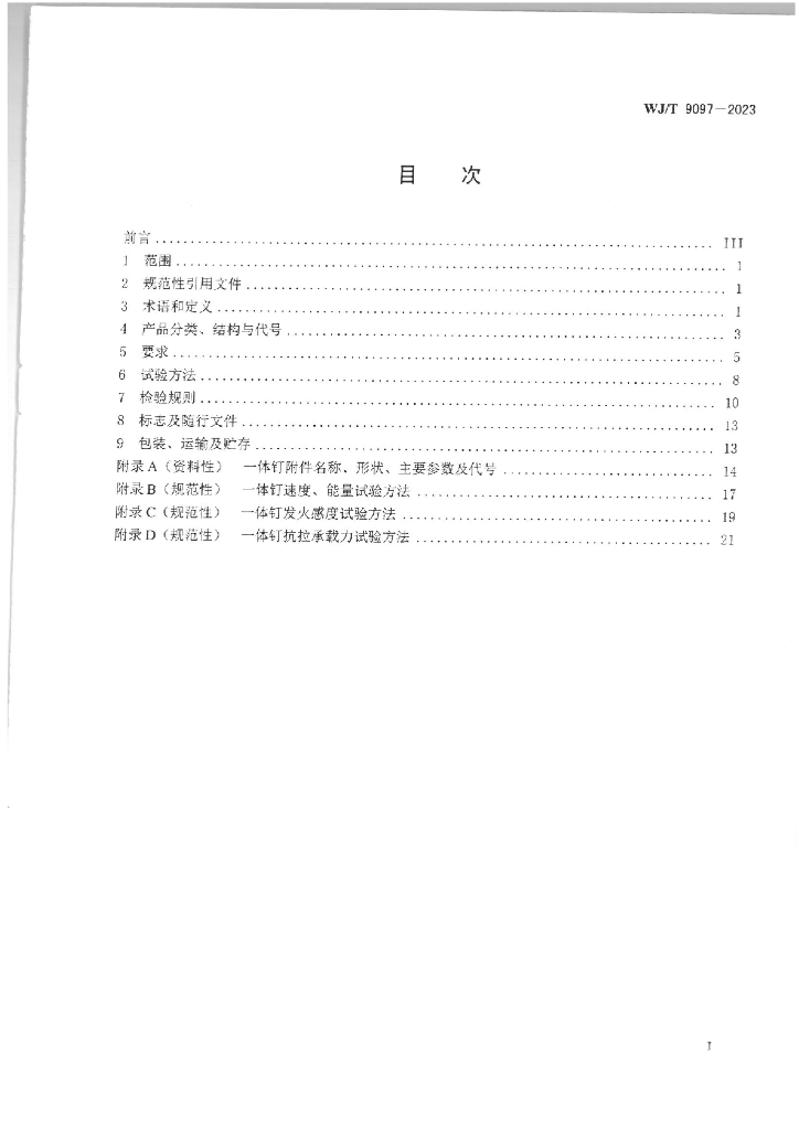 WJ/T 9097-2023 一体钉