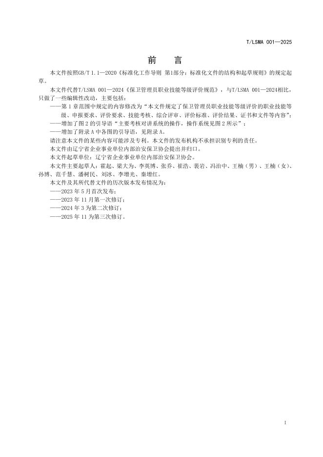 T/LSMA 001-2025 保卫管理员职业技能等级评价规范