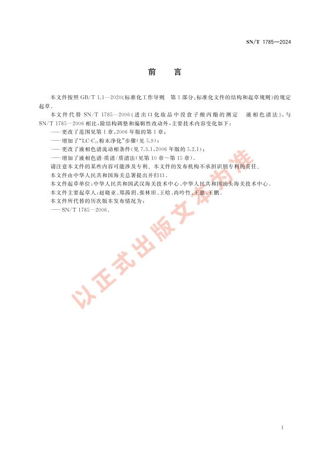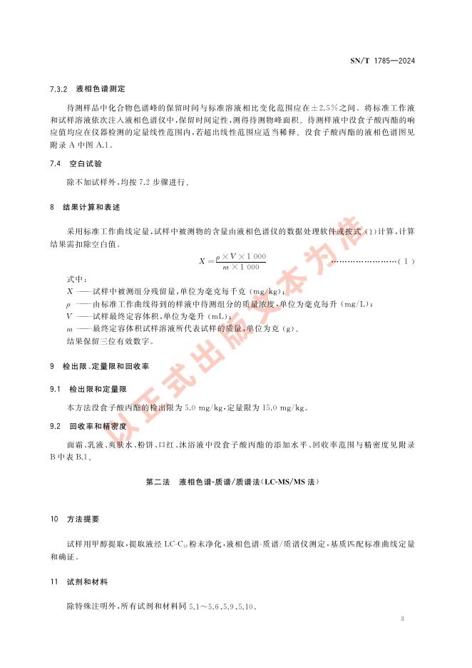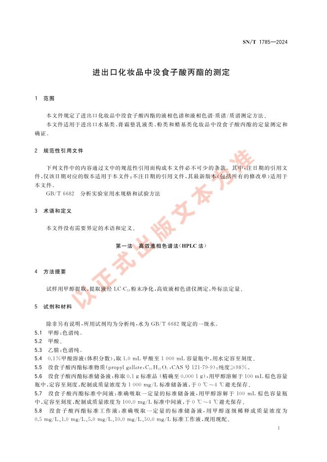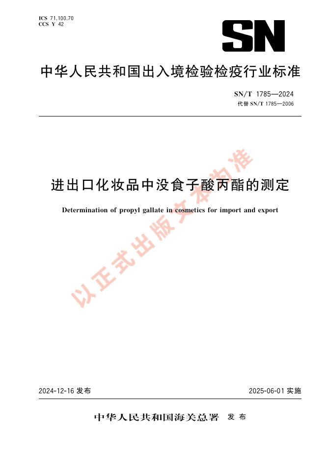 SN/T 1785-2024 进出口化妆品中没食子酸丙酯的测定