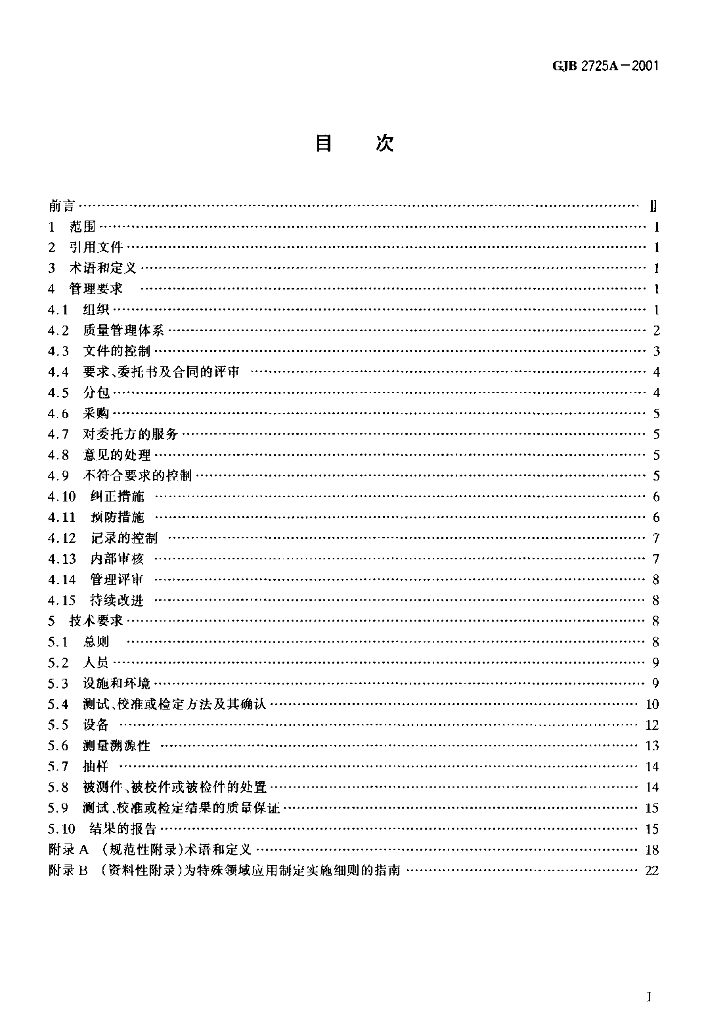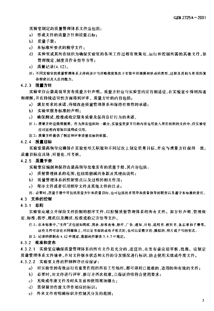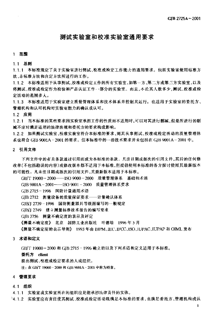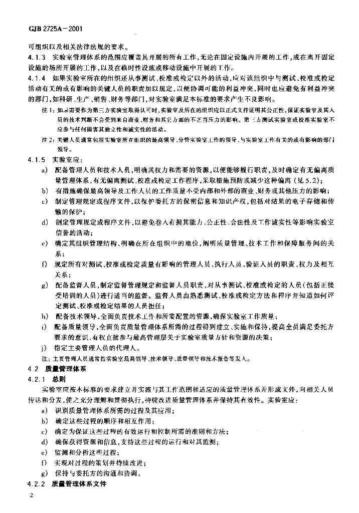 GJB 2725A-2001 测试实验室和校准实验室通用要求