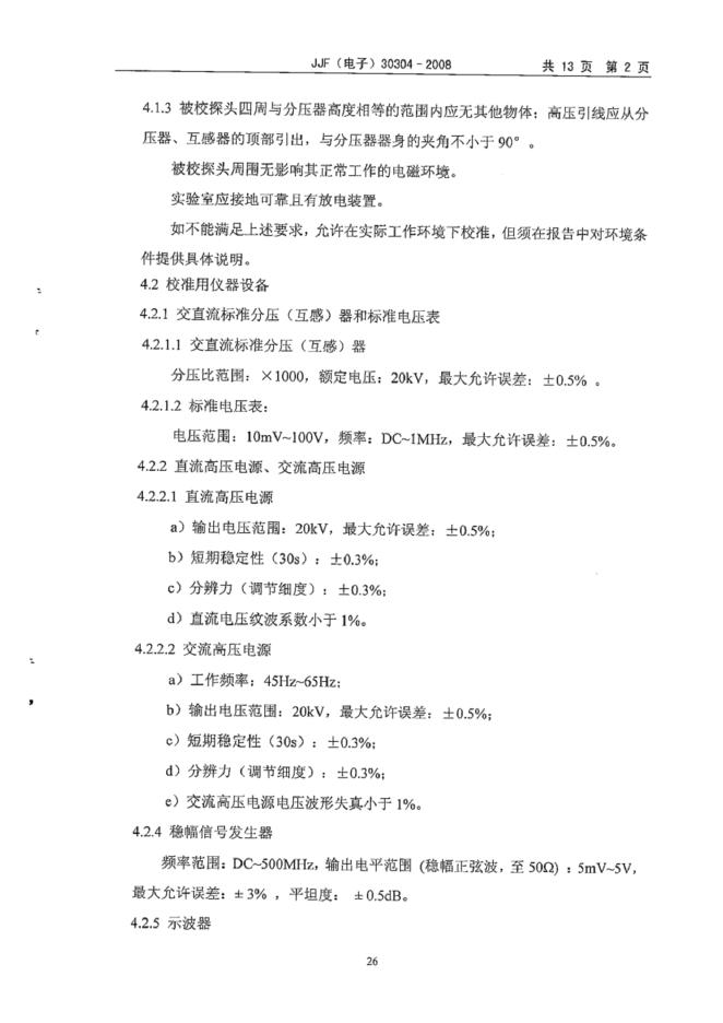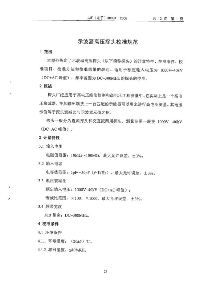JJF(电子)30304-2008 示波器高压探头校准规范