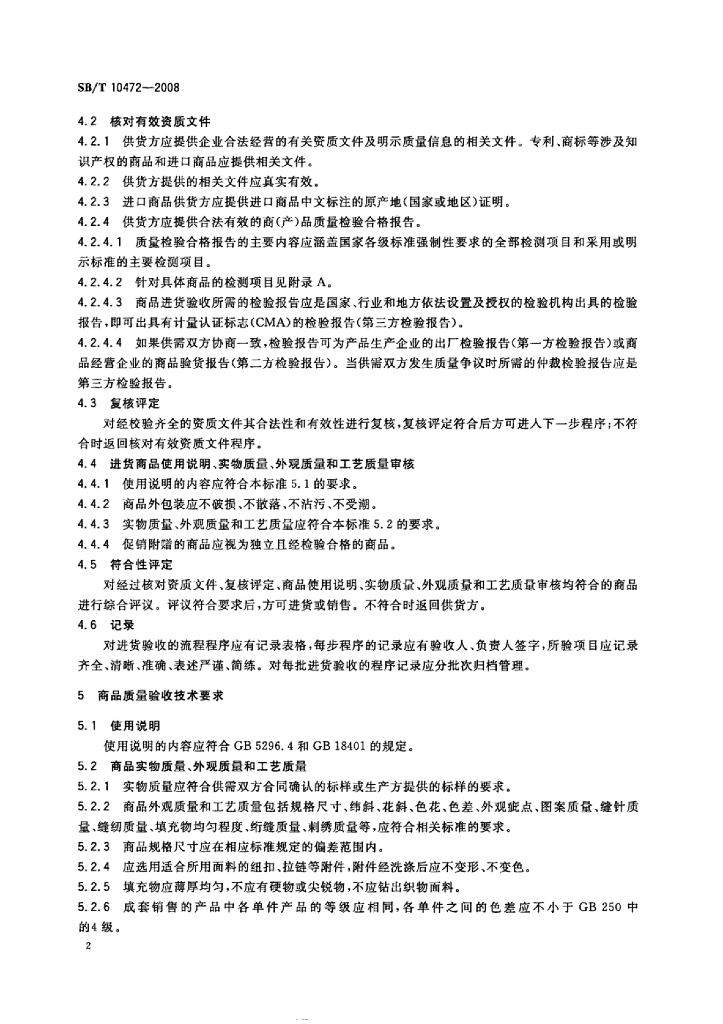 SB/T 10472-2008 室内装饰类纺织商品验收通则