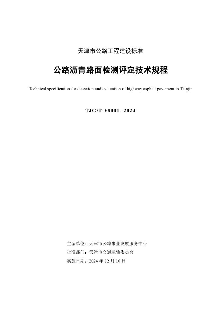 TJG/T F8001-2024 天津市公路沥青路面检测评定技术规程