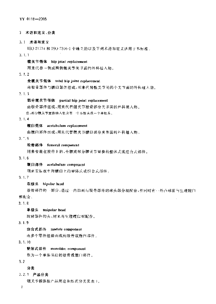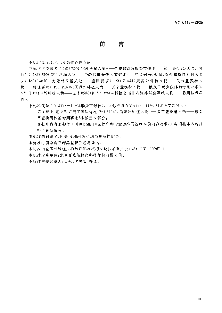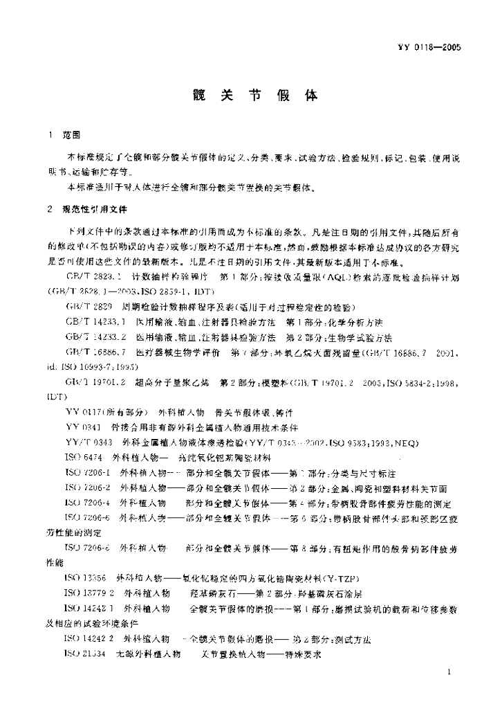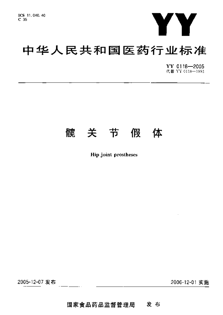 YY 0118-2005 髋关节假体