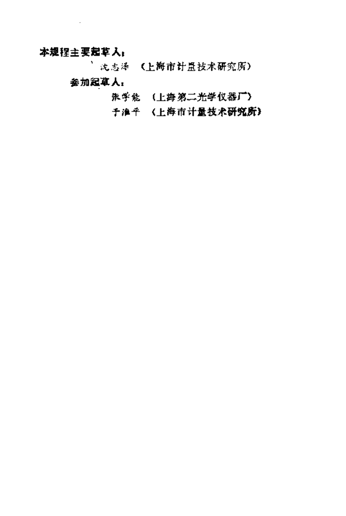 沈志泽(上海市计量技术研究所)、张学能(上海第二光学仪器厂)、于淮平(上海市计量技术研究所)