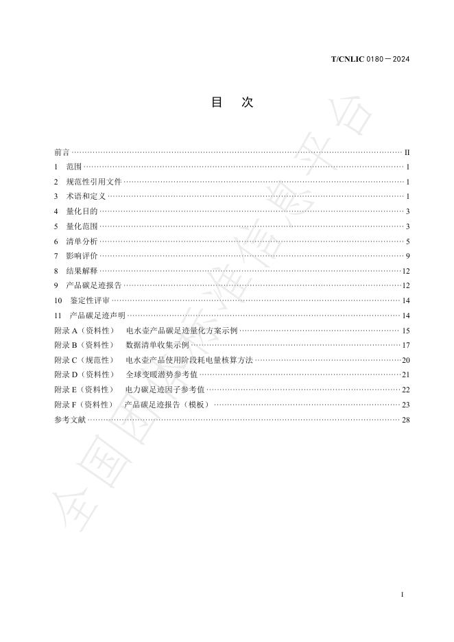 T/CNLIC 0180-2024 温室气体 产品碳足迹量化方法与要求 电水壶