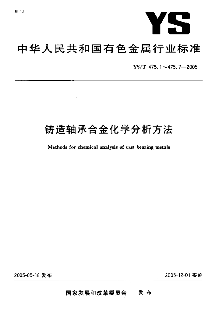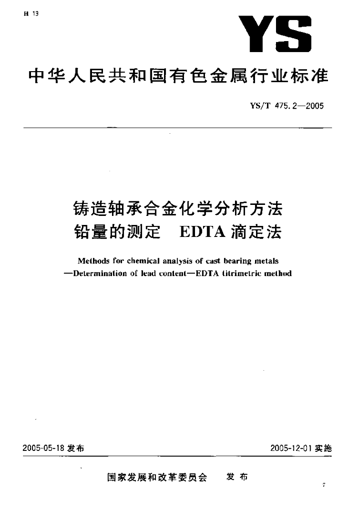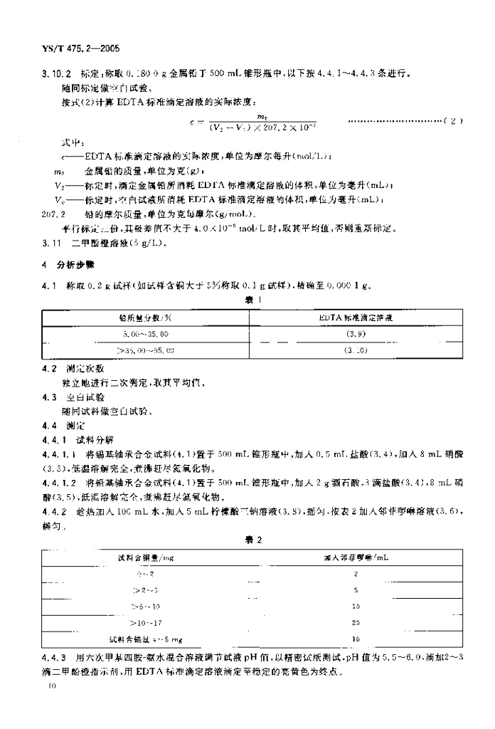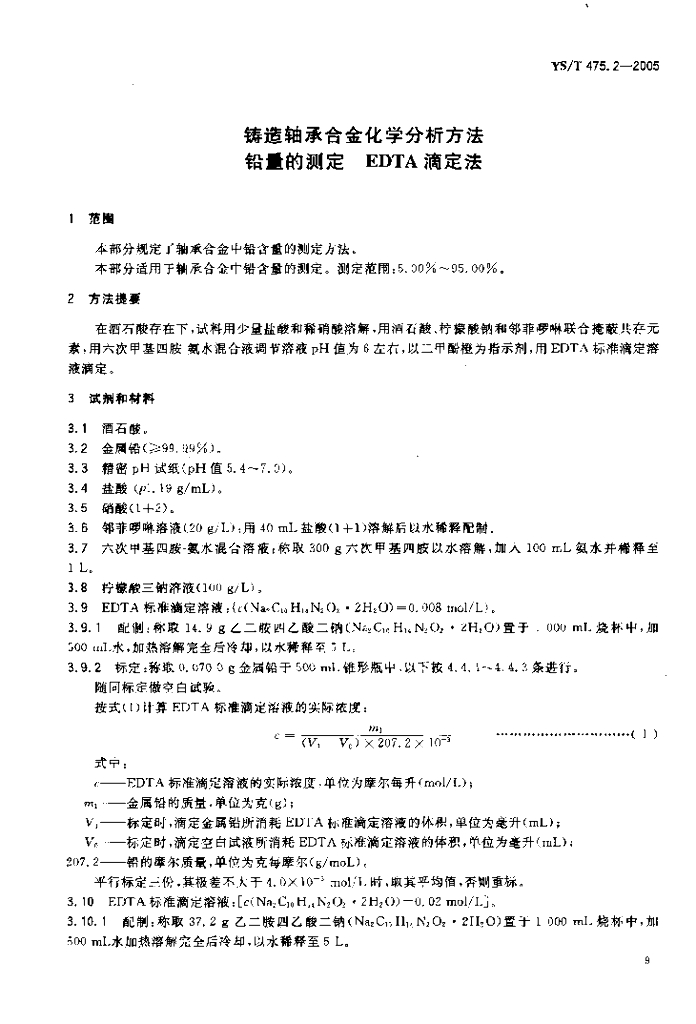 YS/T 475.2-2005 铸造轴承合金化学分析方法铅量的测定EDTA滴定法