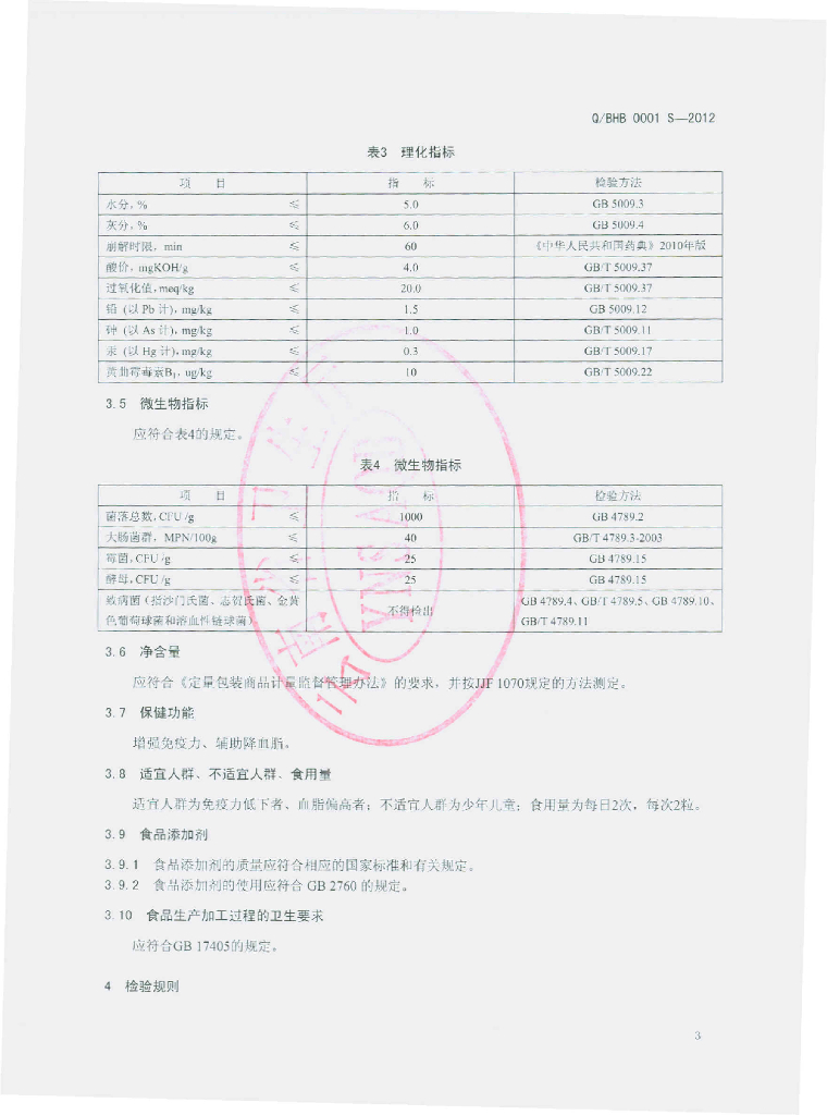 Q/BHB 0001S-2012 金尔贝牌呈俊软胶囊