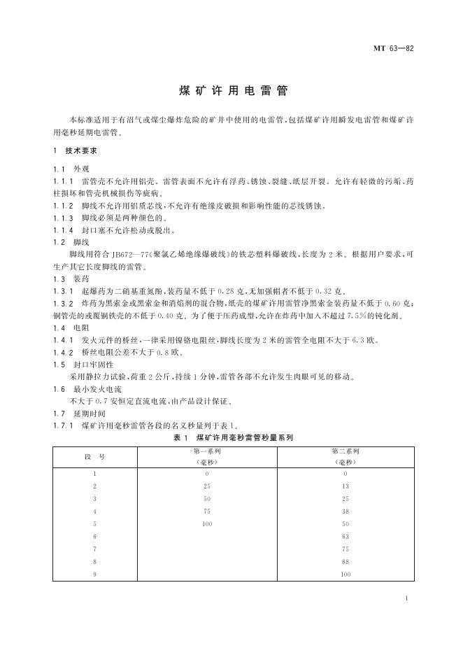 MT 64-1982 煤矿许用电雷管
