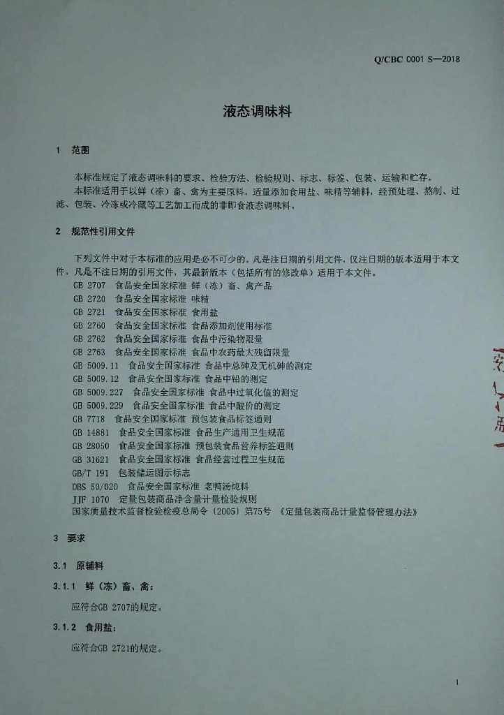 Q/CBC 0001S-2018 液态调味料