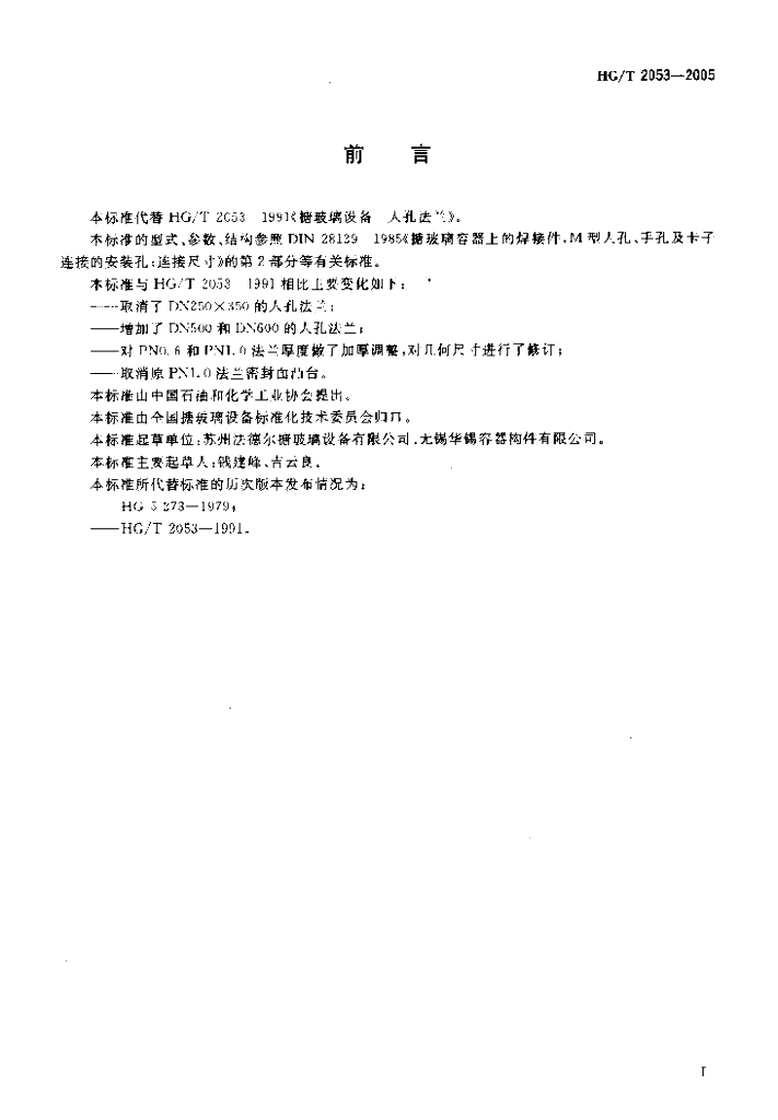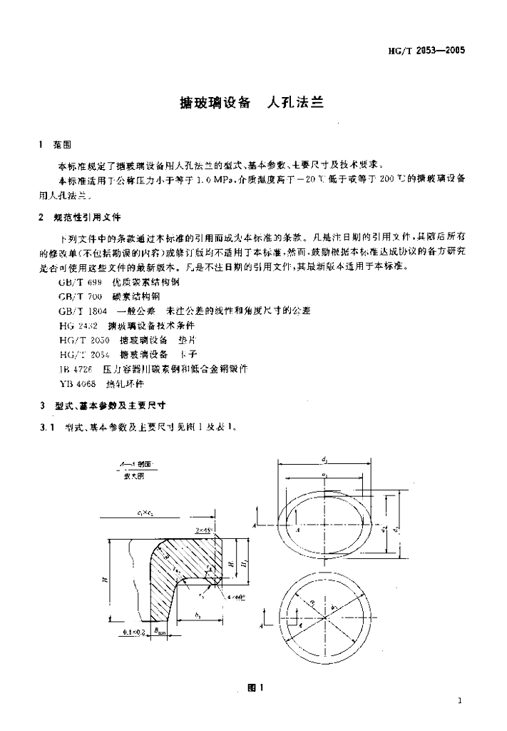 HG/T 2053-2005 搪玻璃设备 人孔法兰