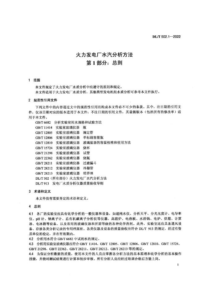 DL/T 502.1-2022 火力发电厂水汽分析方法 第1部分:总则