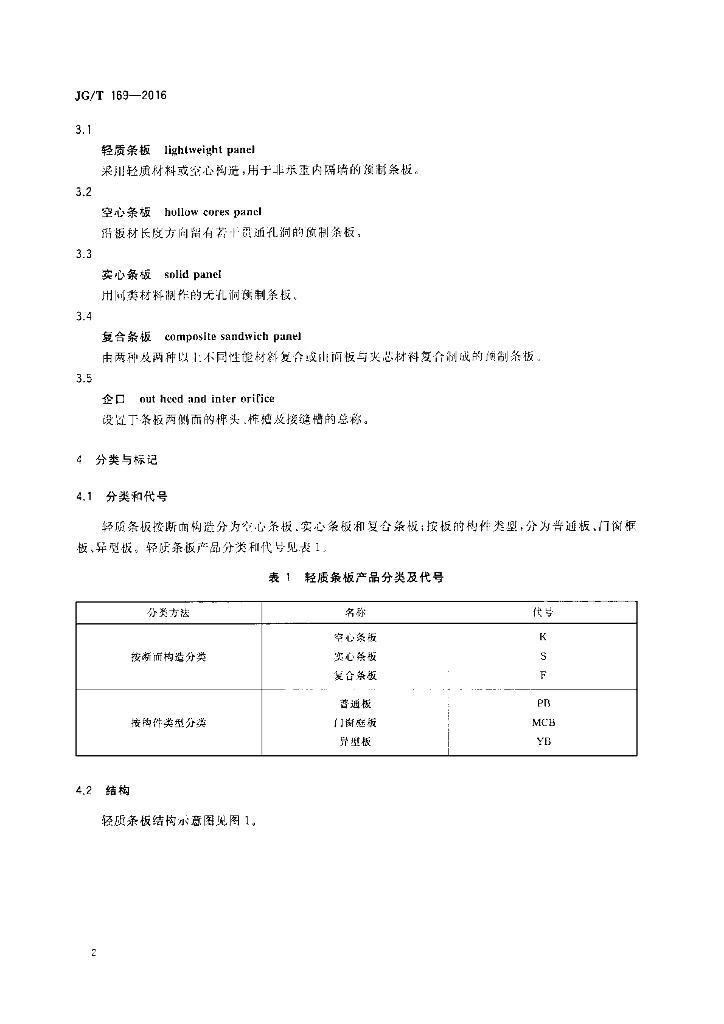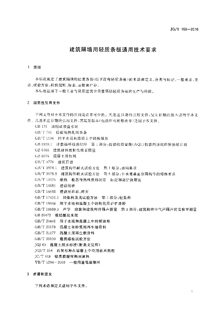 JG/T 169-2016 建筑隔墙用轻质条板通用技术要求