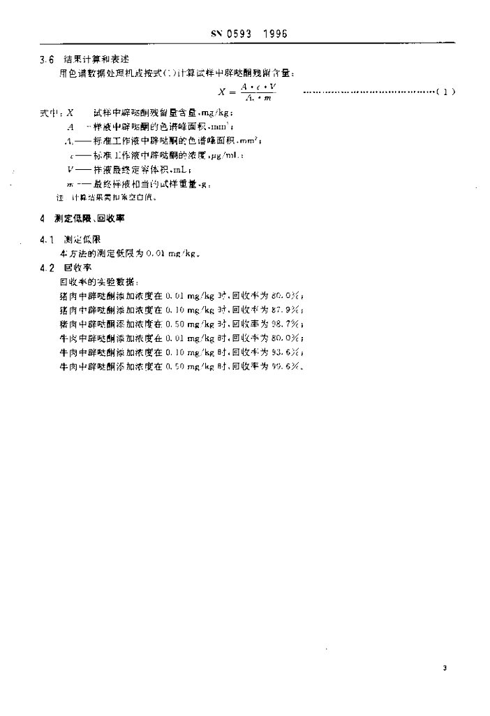 SN 0593-1996 出口肉及肉制品中辟哒酮残留量检验方法