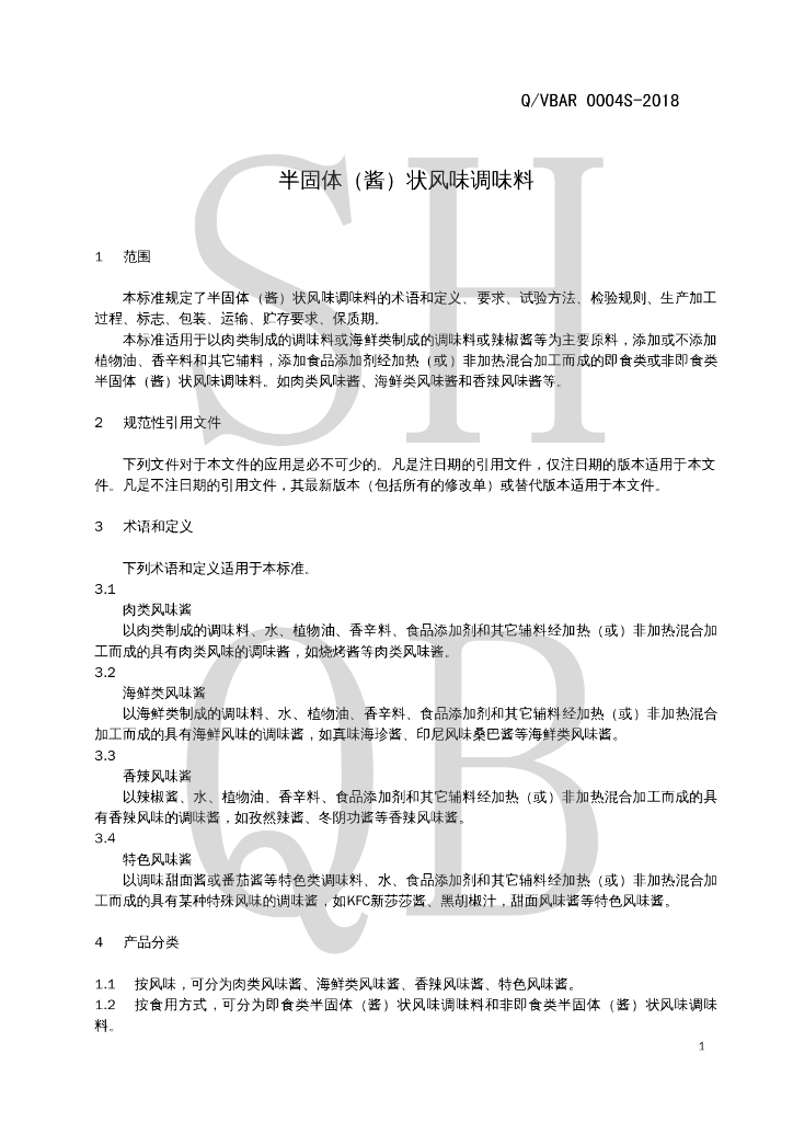 Q/VBAR 0004S-2018 半固体(酱)状风味调味料
