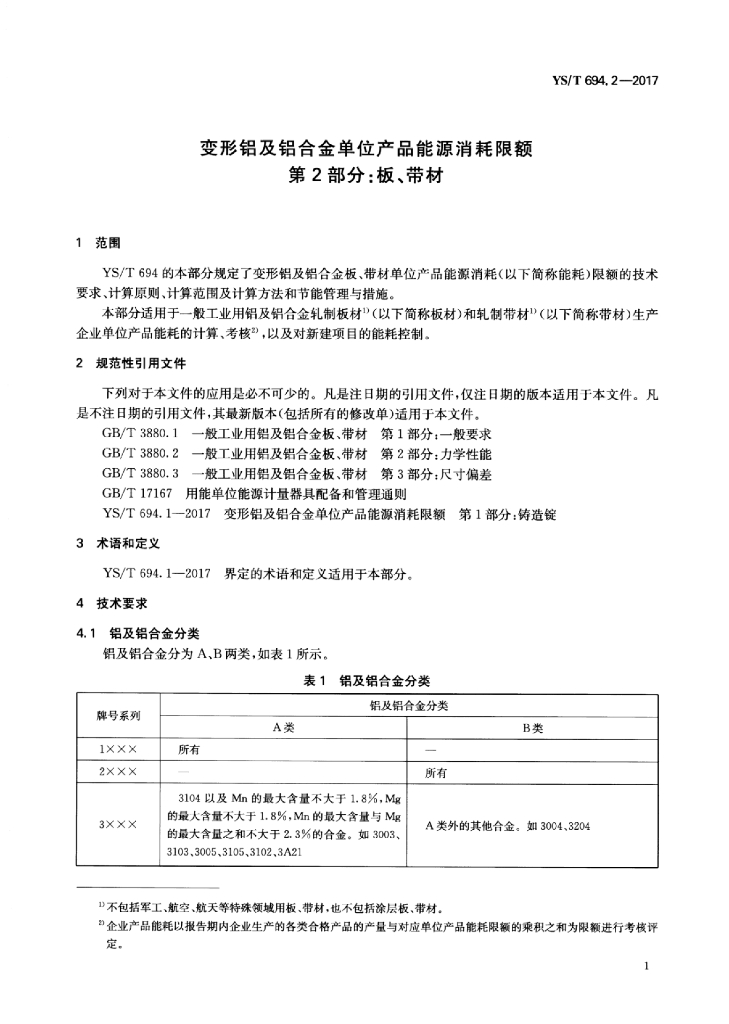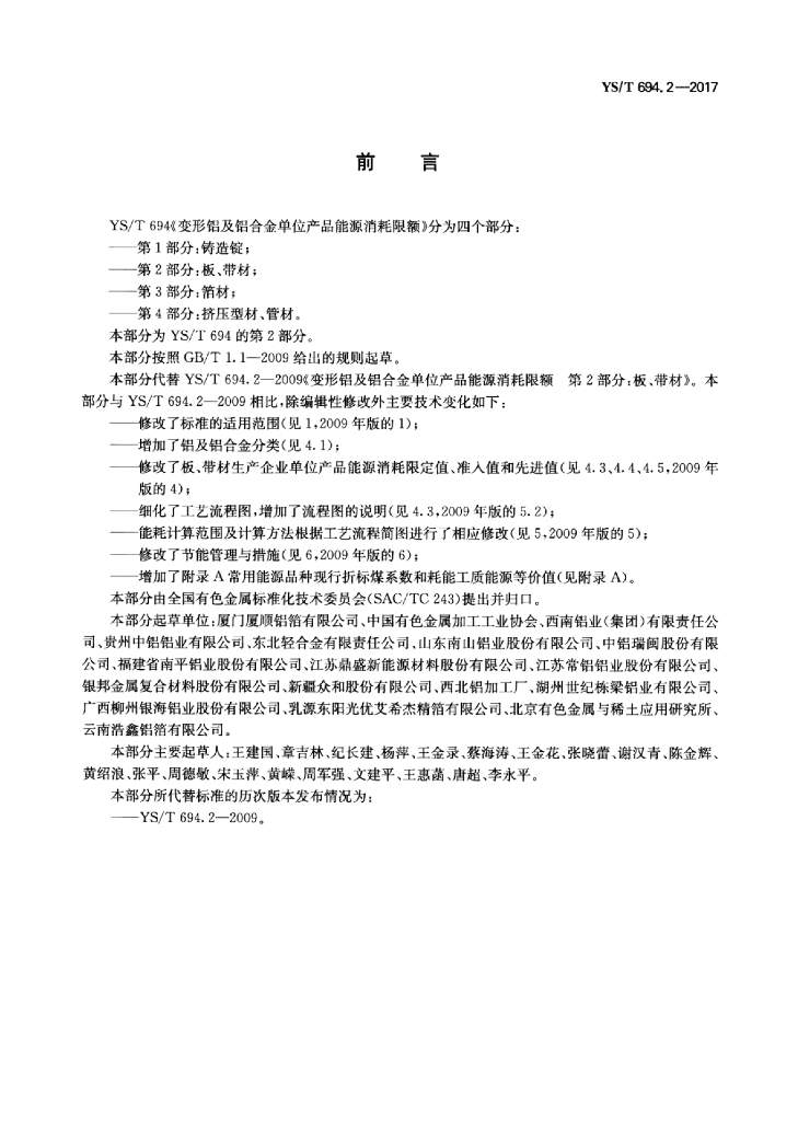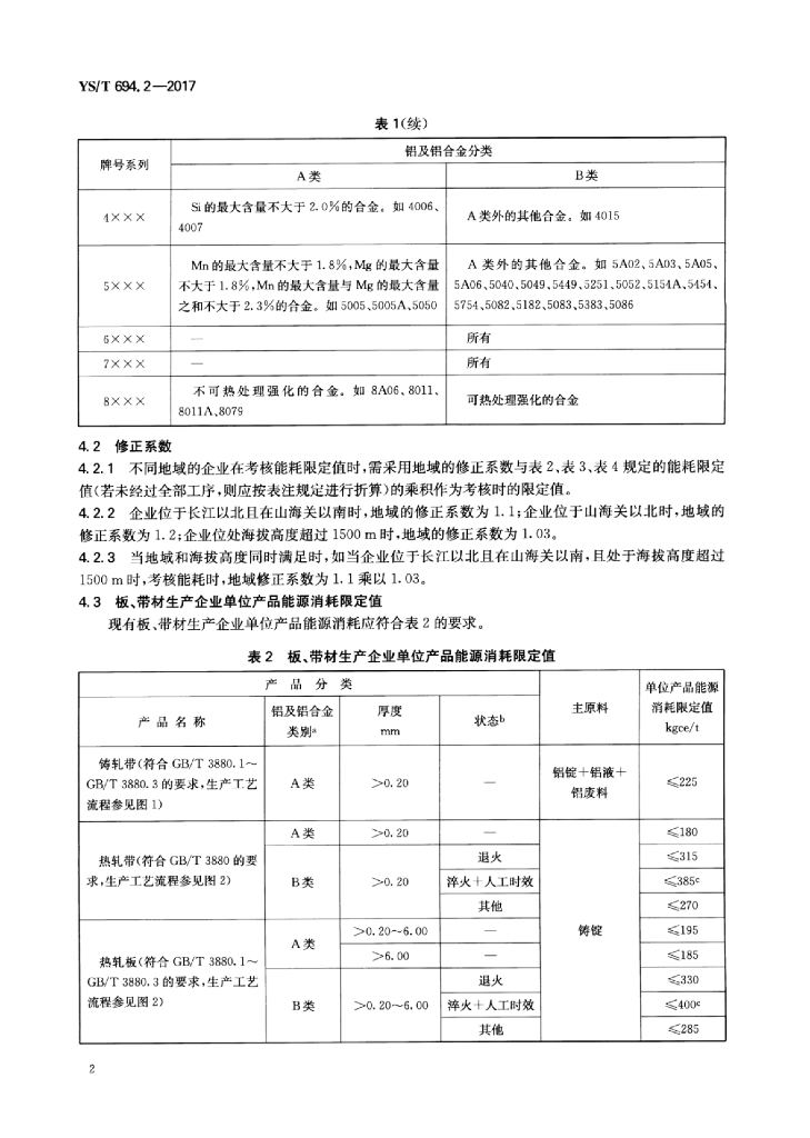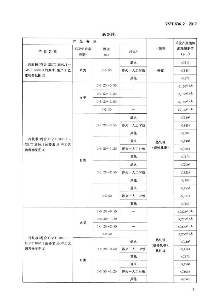 YS/T 694.2-2017 变形铝及铝合金单位产品能源消耗限额 第2部分:板、带材