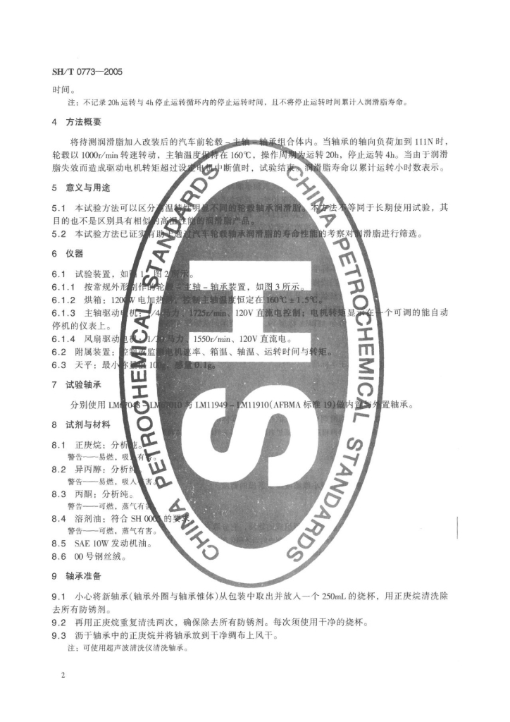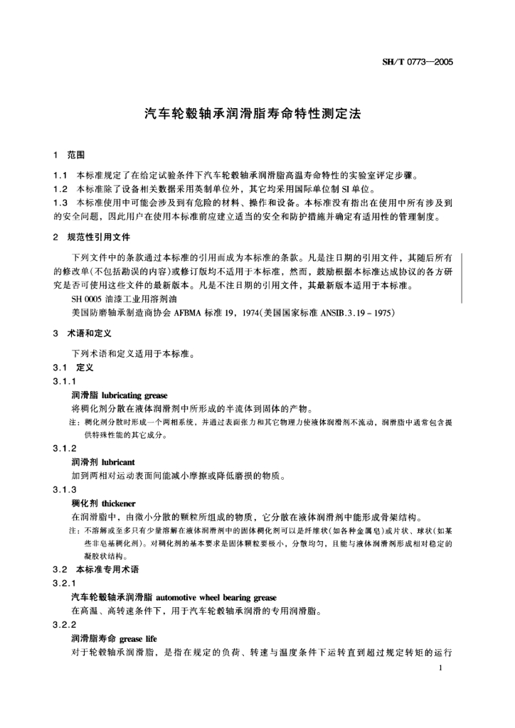 SH/T 0773-2005 汽车轮毂轴承润滑脂寿命特性测定法