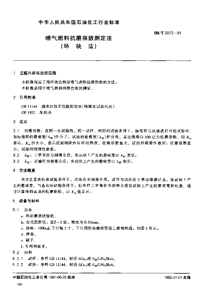 SH/T 0073-1991 喷气燃料抗磨指数测定法(环块法)