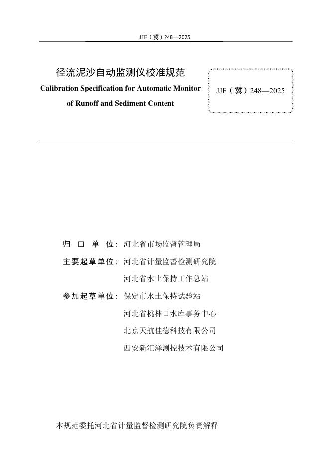 JJF(冀)248-2025 径流泥沙自动监测仪校准规范