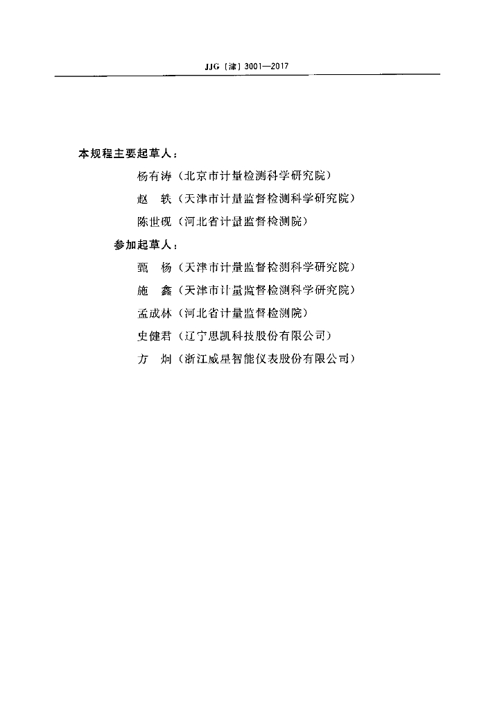 杨有涛(北京市计量检测科学研究院)、赵轶(天津市计量监督检测科学研究院)、陈世砚(河北省计量监督检测院)、甄杨(天津市计量监督检测科学研究院)、施鑫(天津市计量监督检测科学研究院)、孟成林(河北省计量监督检测院)、史健君(辽宁思凯科技股份有限公司)、方炯(浙江威星智能仪表股份有限公司)