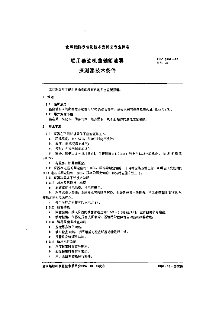 CB 3259-1985 船用柴油机曲轴箱油雾探测器技术条件
