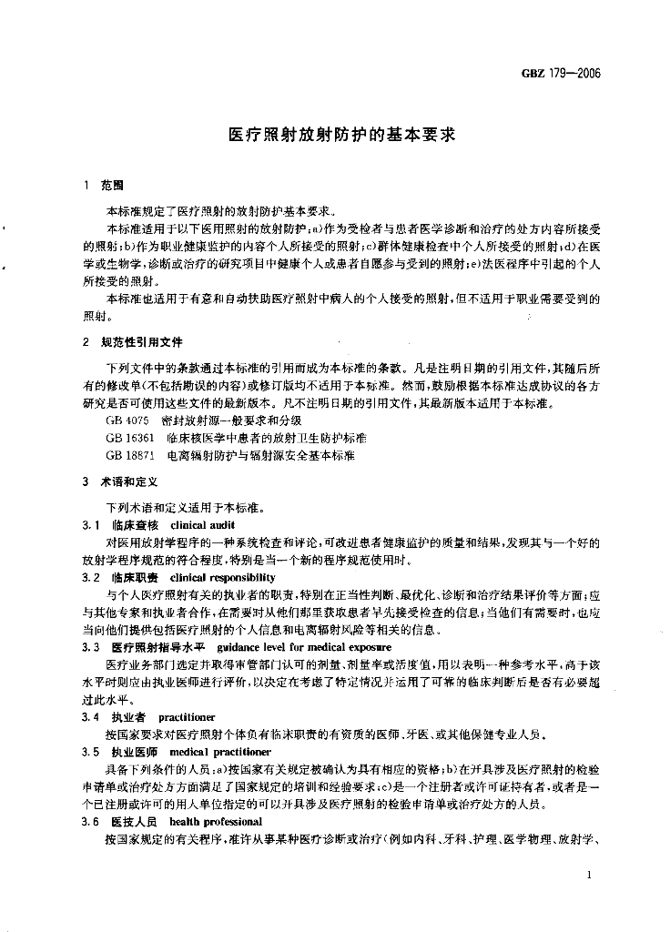GBZ 179-2006 医疗照射防护基本要求